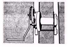 A single-drum, hand-operated winch similar to the one shown in figure 6-17 is suitable for lifting light loads. Single-drum hand winches are available in various capacities, including capacities of 2, 5, 6, and 15 tons (1.8, 4.5, 5.4, 12.5 metric tons). Hand-operated winches are generally mounted near the foot of the rig, where they can be operated efficiently. Notice the location of the winch on the pole derrick shown in figure 6-13. In hoisting and moving heavy objects in the field, engine-driven winches may be used with tackle. Vehicular-mounted winches are also widely used (fig. 6-18). Sources of power for power-driven winches include diesel, gasoline, compressed air, or steam engines as well as electric motors. When vehicular-mounted winches are used, the vehicle should be placed so that the operator can keep a close watch over the load during hoisting. When setting up a power-driven winch to operate hoisting equipment, make sure you give careful consideration to these two factors: (1) the angle with the ground that the hoisting line makes at the drum of the hoist and (2) the fleet angle of the hoisting line winding on the drum. In considering the ground angle, remember that if the hoisting line leaves the drum at an angle upward from the ground, the resulting pull on the winch will tend to lift it clear of the ground. In this case, a leading block should be placed in the system at some distance from the drum to change the direction of the hoisting line to a horizontal or downward pull. The hoisting line has to be overwound or underwound on the drum, as may be necessary, to prevent a reverse bend. As for the fleet angle, bear in mind that the distance from the drum to the first sheave of the system is the controlling factor. Place the drum of the winch so that a line from the last block