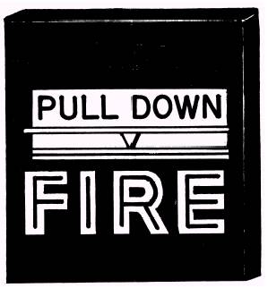 Figure 7-6.\Manual pull box. or a manual fire alarm. A manual fire alarm system may include many initiating devices. The manual fire alarm devices are to provide a means of manually activating the fire alarm system. They are used in all types of fire alarm systems. They may be the only type of initiating devices provided or they may be used with automatic initiating devices, such as heat or smoke detectors. Manual fire stations are generally located near main exits from a building or from a floor of a multistory building and in certain work areas containing unusual fire hazards, valuable equipment, or records subject to fire damage. Paint shops, aircraft repair areas, computer rooms, and telephone equipment rooms are examples of such work areas. Single-action and double-action devices are both used. The single-action device requires one action to cause an alarm, and a replaceable glass rod is broken with each operation. The doubleaction device requires two actions to cause an alarm: first, the glass window is broken; second, the alarm lever is pulled. The glass elements in these two examples are necessary parts to retain all the design features. Both devices can be tested without breaking the glass parts by opening the device. To open a manual fire alarm box, you may have to loosen a setscrew or operate a latch with a hexagonal (allen) wrench, screwdriver, or key. Manual initiating devices should be visually inspected monthly for physical damage, such as that caused by vandalism or painting. At this time, count the devices to be sure that none have been concealed or removed. Correct deficiencies promptly. Test repaired units by mechanical operation and transmission of local and remote signals without glass breakage. Be sure to inform building and fire department personnel that the test is to be performed. Test all manual devices on a rotation schedule so that all devices are tested semiannually. Some devices should be tested each month, at least one from each initiating circuit (zone) or remote signaling circuit, in the case of coded fire alarm boxes. Keep accurate records of devices tested, their locations, and the rotation scheme. Store a copy of building system diagrams and test records in the control unit.