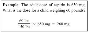 WEIGHT.-In the calculation of dosages, weight has a more direct bearing on the dose than any other factor, especially in the calculation of pediatric doses. The rule governing calculation of pediatric doses based on weight is Clark's Rule, expressed as follows: