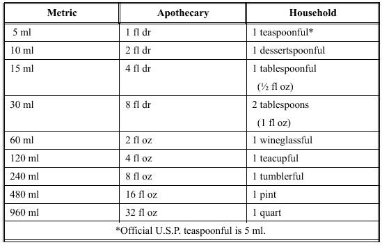 Table 6-2.-Table of Metric Doses with Approximate Equivalents