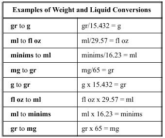 Table 6-3.-Conversion Table for Weights and Liquid Measures Table 6-4.-Examples of Weight and Liquid Conversions 2. To find the total quantity of a mixture when the percentage strength and the amount of the active ingredient are known, divide the weight or volume of the active ingredient by the percent (expressed as a decimal fraction).