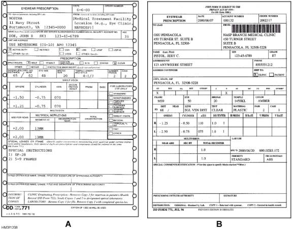 Figure 12-8.-Eyewear Prescription, DD Form 771: A. Computer-printed