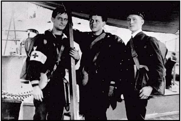 The next revision in the structure of the Hospital Corps came by act of Congress on August 29, 1916. Under this plan, the rates were hospital apprentices, second class and first class (both of whom wore a red cross on the sleeve); pharmacist's mates, third, second, and first; and chief pharmacist's mate. The officer contingent of the Hospital Corps included the two warrant officer ranks of pharmacist and chief pharmacist. The reorganization allowed for a massive, fivefold increase in the size of the Hospital Corps. At the start of 1917, the Hospital Corps counted 1,700 men in its ranks. Aconcerted effort to recruit and train new personnel enabled the corps to reach its authorized strength of 3 1/2 percent of the Navy and Marine Corps, or 6,000 men. But as these plans came yes"> to fruition, the United States entered World War I in April. By the end of 1918, the corps peaked at about 17,000. PHARMACIST'S MATES IN WORLD WAR I Figure APP-I-2.-A hospital steward (chief petty officer) and two hospital