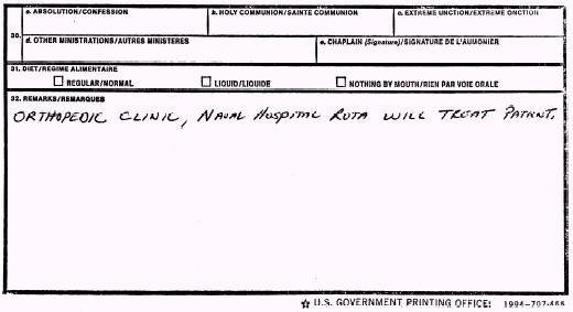 Figure 13-14B.\U.S. Field Medical Card (back). This card is two-sided (figs. 13-14A and 13-14B) and contains blocks for recording the casualty's personal data, the initial diagnosis, nature of the casualty, date and time of the injury, emergency medical treatment rendered, casualty disposition, and the signature of the aid person rendering the initial treatment. Make every effort to complete the card as accurately as possible. This information will be extremely helpful to the medical staff after the casualty has been transported for further medical treatment. |