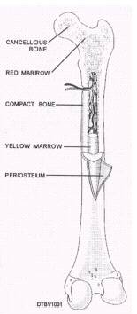 CHAPTER 3 - HEAD AND NECK ANATOMY Basic knowledge of the skull, facial bones, jaws, and muscles of the head and neck region are fundamental for a Dental Technician. It is important to understand the relationship of the bones and muscles as they work together to provide support for the dentition (teeth) and movement for mastication (chewing). STRUCTURE OF BONE The bones of the human skeleton provide rigid support for muscles and skin, and serve to protect the easily injured organ systems of the body. Bone itself is a living, highly vascular tissue, which is made up of both inorganic (minerals) and organic (cells & connective tissue fiber) elements. The inorganic component of bone serves as a warehouse for calcium and phosphorous, two essential minerals for the body. Bone consists of a hard outer shell called cortical or compact bone and an inner spongy, porous portion referred to as cancellous bone (fig. 3-1). Within this cancellous area are the bone marrow spaces responsible for manufacturing blood cells. The majority of blood cells are made by the bone marrow found in the long bones, such as the femur or thigh bone. A thin layer of connective tissue, called periosteum, surrounds each bone and provides nourishment through many vascular vessels. The periosteum also contains many nerve endings that respond to trauma with the sensation of pain. When a bone breaks, it is the periosteum that hurts, not the bone itself. When new bone is required, such as when a break occurs, it is the periosteum which provides the cells that make the new bone. Bone can be classified as to how it develops, its location, and its shape. Membraneous bone forms from the periosteum in successive layers and is usually flat such as those of the skull. The long bones of the arms and legs are cartilaginous bones, which develop from cartilage. BONES OF THE SKULL The skull consists of 28 bones that form the framework of the head and provide protection for the