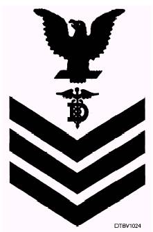 Figure 1-2.\Dental rating badge. personnel qualifications, and the desires of each member. As a basic dental assistant, you will be qualified to perform numerous general duties. |