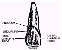 Figure 4-28.\Features of a lingual surface of maxillary central incisor.
