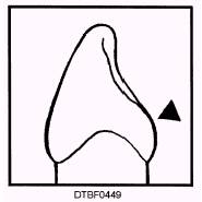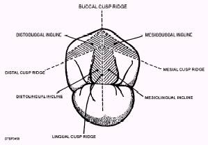 Triangular ridge\Two inclines meet to form a triangular ridge and are located either on a facial or a lingual cusp ridge.