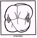 MANDIBULAR THIRD MOLAR The mandibular third molar (tooth #17 or #32), illustrated in figure 4-47, is the eighth tooth from the midline. It appears in many forms, sizes, and shapes. Since its function is similar to that of the other two mandibular molars, its general appearance is the same. It has smaller surfaces, more supplemental grooves, and four or five cusps, which are not so sharply differentiated as those of the first two molars. Roots\The roots, generally two in number, are shorter in length and tend to be fused together. In many instances they show a distinct distal curve. GLOSSARY OF UNIQUE DENTAL ANATOMY The following list will be helpful to you in understanding some of the anatomical terms used in this chapter. Cusp\A pointed or rounded elevation of enamel found on cuspids and on the chewing surfaces of bicuspids and molars.