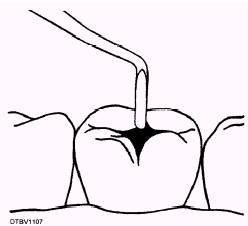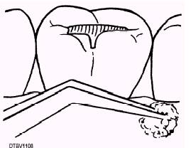 CHAPTER 6 - EMERGENCY TREATMENT FOR ORAL DISEASES AND INJURIES The dentist is responsible for all patient diagnosis and treatment. Certain circumstances may warrant that you, the Dental Technician, provide emergency dental treatment to a patient. An example might be when one of the following circumstances occur: You are standing duty Dental Technician watch\There is no dental officer aboard the dental clinic, the hospital, the ship, or the Fleet Marine Force where you are stationed. A mass casualty situation has occurred \The dental officer may be involved with the treatment of more serious medical injuries. Always contact a dental officer if an emergency occurs. The dentist will indicate the treatment plan and authorize you to perform treatment. You may provide temporary treatment that provides relief from pain, combats infection, or prevents further damage to the oral structures. Always instruct your patient to come to dental sick call the next day, or make an appointment in the dental specialty for which you have treated him or her. Advise your patient to keep the appointment even if the symptoms of the condition disappear. Follow any command or department instructions on patient care. Oral conditions are discussed in terms of symptoms and signs. A symptom is what a patient tells you about his or her disease or injury (for example, this person tells you of a toothache or sore gums). A sign is what you observe when you examine the oral structures (for example, bleeding gums, carious lesion, or heavy deposits of plaque or calculus). EMERGENCY TREATMENT GUIDELINES Certain emergency guidelines have been established to assist you in providing emergency treatment to your patients. In all these conditions, you should follow the emergency guidelines listed below: Check the patient's general physical condition. Question the patient and record any symptoms. Review patient's health history. Examine the patient and record signs, including the vital signs. Also check for other injuries if trauma has been found. Consult with the dentist and report the patient's condition. Request instructions from the dentist. Follow the treatment plan exactly. Record the emergency treatment provided on the Health Record, Dental, SF 603. Use the standard operating procedures (SOP) format discussed in Dental Technician, Volume 2, NAVEDTRA 12573, chapter 2, "Oral Examination." Advise the patient the treatment provided is temporary and to return for definitive treatment. DISEASES OF THE TISSUES OF THE TEETH An important part of your job as a Dental Technician is the ability to recognize diseases of the tissues of the teeth. We will discuss some of these diseases in the paragraphs that follow as well as give symptoms that will help you recognize these diseases. DENTAL CARIES Dental caries still occur in the majority of the adult population. The most common cause of dental caries is bacterial plaque, which we discussed in chapter 5. Caries begin in the enamel, appearing as a chalky white spot. If the lesion progresses, it will continue into the dentin and eventually involve the pulp. Symptoms The patient may complain that the affected tooth is sensitive to hot and cold (usually cold), sweets, and pressure to biting. Sometimes the pain from an affected tooth can manifest in a healthy, noninvolved tooth; this is called referred pain. Signs Upon examination you may find the following signs of an infection: A chalky white spot on the enamel Roughness on the surface of the tooth A dark, stained cavity A cavity filled with food or a spongy mass of decaying dentin Treatment As a part of the emergency treatment plan, you may perform the following duties: Perform emergency treatment guidelines. Gently remove all debris from the cavity with a spoon excavator as illustrated in figure 6-1. Flush the cavity with warm water. Isolate the tooth with cotton rolls or gauze. Carefully dry the cavity with cotton pellets as illustrated in figure 6-2. Mix a temporary filling (zinc oxide eugenol, IRM, etc.). Gently fill the cavity with the temporary filling material as illustrated in figure 6-3. Check the occlusion. Make sure the temporary restoration does not touch the opposing tooth. Instruct the patient to return for definitive treatment on the next work day.