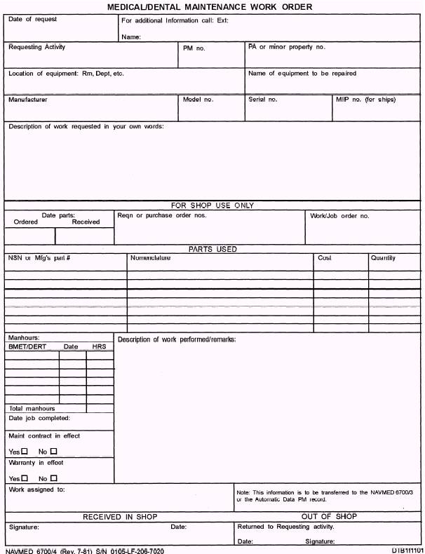 Figure 11-1.\Medical/Dental Maintenance Work Order, NAVMED 6700/4.