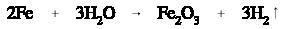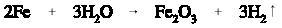 shows that iron reacts with water to form ferric oxide and hydrogen gas (the