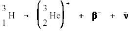 Tritium decays by emitting a weak beta particle together with an antineutrino. The product is helium-3. Helium is a monatomic gas; therefore, the decay of 1 mole of T2 yields 2 moles of helium. This causes a pressure buildup in sealed vessels containing diatomic tritium gas (or HT or DT gas). The following reaction is tritium disintegration.