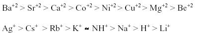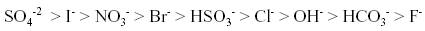 Similarly, the relative affinities between an anion resin and various anions are as follows.