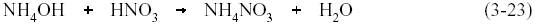 Conductivity decreases even more than would be expected because of the formation of NH4NO3. N03 is not as conductive as OR, so the NH4NO3 results in a lower conductivity than NH40H. This neutralization of NH40H is shown by the following reaction.