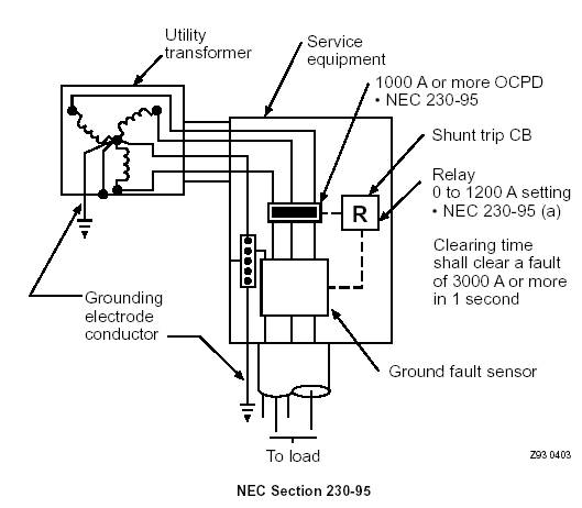Figure 3-1. Ground-fault protection shall be provided with 277/480-V, three-phase, four-wire services with overcurrent protection devices of 1,000 A or more. A ground fault sensor (window) can be used to encircle all service conductors, including the grounded conductor (neutral).