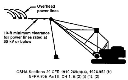 6-2. A minimum clearance of 10 ft between overhead power lines and equipment is
