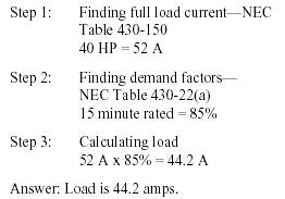 Elevator and escalator motors are considered as intermittent duty. This allows them to be protected by the overcurrent protection device supplying the power for the branch circuit, which is selected by the percentages in NEC Table 430-22(a) times the full load current of the motors. For example: What is the load for a 15-minute rated 40-hp, 460-V, three-phase motor used as a freight elevator motor?