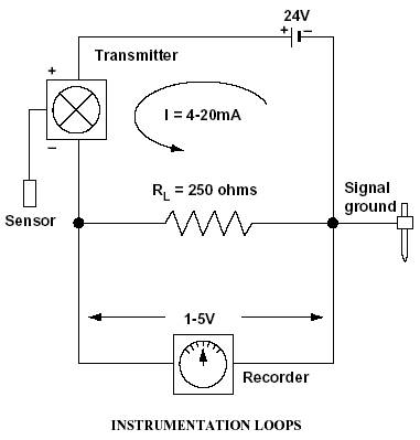 Figure 10-8. Typical Process Instrument Loop. 10.9.2.2.1 HAZARDS The use of materials for something other than their original design criteria has the potential for providing an additional hazard, especially to personnel unfamiliar with the research apparatus. Personnel may assume that the material is used as originally designed and can unknowingly expose themselves to hazards unless special precautions are followed. Some examples of items used in an unconventional manner are: 1. Copper pipe used as an electrical conductor 2. Insulated flexible copper pipe used as an electrical conductor 3. Specially designed high-voltage or high-current connectors 4. Specially designed high-voltage or high-current switches 5. Water column used as a high-voltage resistor 6. Standard coax cable used in special high-voltage pulsed circuits