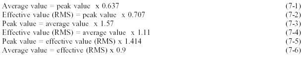 There are six basic equations that are used to convert a value of AC voltage or current to another value, as listed below.