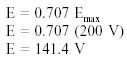 Example 1: The peak value of voltage in an AC circuit is 200 V. What is the RMS value of the voltage?