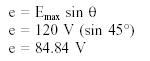 Example 1: What is the induced EMF in a coil producing a maximum EMF of 120 V when the angle from reference is 45?