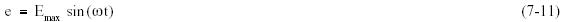 Using substitution laws, a relationship between the voltage induced, the maximum induced voltage, and the angular velocity can be expressed. Equation (7-11) is the mathematical representation of the relationship between the voltage induced, the maximum voltage, and the angular velocity, and is equal to the output of an AC Generator.
