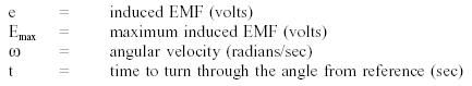 The maximum induced voltage can also be called peak voltage Ep. If (t) is the time in which the coil turns through the angle (0), then the angular velocity (co) of the coil is equal to 0/t and is expressed in units of radians/sec. Equation (7-10) is the mathematical representation of the angular velocity.