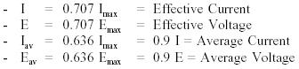 Summary AC generation analysis is summarized below. Voltage, Current, and Frequency Summary The following terms relate to the AC cycle: radians/second, the velocity the loop turns; hertz, the number of cycles in one second; period, the time to complete one cycle. Effective value of AC equals effective value of DC. Root mean square (RMS) values equate AC to DC equivalents: