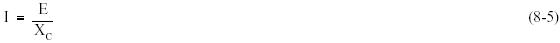 Equation (8-5) is the mathematical representation for the current that flows in a circuit with only capacitive reactance.