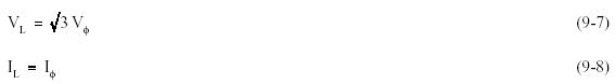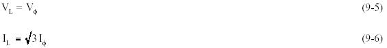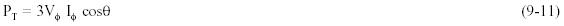 Total power (PT) is equal to three times the single-phase power. Equation (9-11) is the mathematical representation for total power in a balanced delta or wye load.