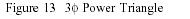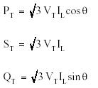 As you can see, the total power formulas for delta- and wye-connected loads are identical. Total apparent power (ST) in volt-amperes and total reactive power (QT) in volt-amperes-reactive are related to total real power (PT) in watts (Figure 13). A balanced three-phase load has the real, apparent, and reactive powers given by: