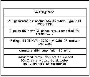 Because of the nature of AC voltage and current, the operation of an AC generator requires that rules and procedures be followed. In addition, there are various types of AC generators available, each type having advantages and disadvantages. EO 1.5DESCRIBE the bases behind the kW and current ratings of an AC generator. EO 1.6DESCRIBE the conditions that must be met prior to paralleling two AC generators including consequences of not meeting these conditions. EO 1.7DESCRIBE the difference between a stationary field, rotating armature AC generator and a rotating field, stationary armature AC generator. EO 1.8EXPLAIN the differences between a wye-connected and delta-connected AC generator including advantages and disadvantages of each type. Ratings Typical name plate data for an AC generator (Figure 4) includes: (1) manufacturer; (2) serial number and type number; (3) speed (rpm), number of poles, frequency of output, number of phases, and maximum supply voltage; (4) capacity rating in KVA and kW at a specified power factor and maximum output voltage; (5) armature and field current per phase; and (6) maximum temperature rise. Power (kW) ratings of an AC generator are based on the ability of the prime mover to overcome generator losses and the ability of the machine to dissipate the internally generated heat. The current rating of an AC generator is based on the insulation rating of the machine.