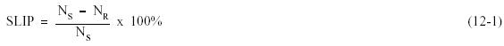 Figure 3 Induction Motor Slip It is virtually impossible for the rotor of an AC induction motor to turn at the same speed as that of the rotating magnetic field. If the speed of the rotor were the same as that of the stator, no relative motion between them would exist, and there would be no induced EMF in the rotor. (Recall from earlier modules that relative motion between a conductor and a magnetic field is needed to induce a current.) Without this induced EMF, there would be no interaction of fields to produce motion. The rotor must, therefore, rotate at some speed less than that of the stator if relative motion is to exist between the two. The percentage difference between the speed of the rotor and the speed of the rotating magnetic field is called slip. The smaller the percentage, the closer the rotor speed is to the rotating magnetic field speed. Percent slip can be found by using Equation (12-1).