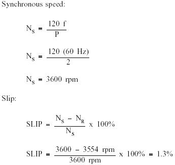 Example: A two pole, 60 Hz AC induction motor has a full load speed of 3554 rpm. What is the percent slip at full load? Solution: