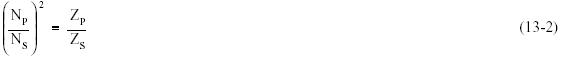 Another way to express the impedance ratio is to take the square root of both sides of Equation (13-2). This puts the ratio in terms of the turns ratio, which is always given for a transformer.