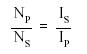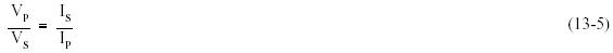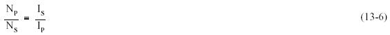 where IP= primary coil current Is = secondary coil current Since the voltage ratio is equal to the turns ratio, we can express the current ratio in terms of the turns ratio, as in Equation (13-6).