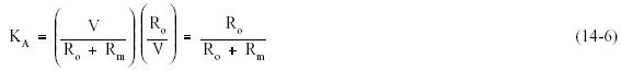 Equation (14-9) is a mathematical representation of the relationship between input voltage and current to the ammeter and the value of input resistance.