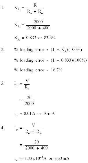 Find: 1. accuracy 2. %loading error 3. true current 4. measured current