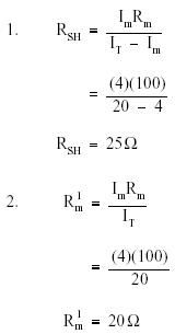 Example: An ammeter, with a 100 92 meter resistance and a full scale deflection current of 4 mA, is to be shunted to measure currents from 1 to 20 mA.