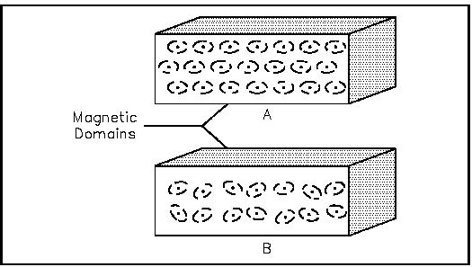 Figure 19 Magnetic Domains The alignment of these domains results in the formation of magnetic poles at each end of the magnet. These poles are called the north pole and the south pole. The law of magnetism states that like magnetic poles repel and unlike magnetic poles attract one another (Figure 20).