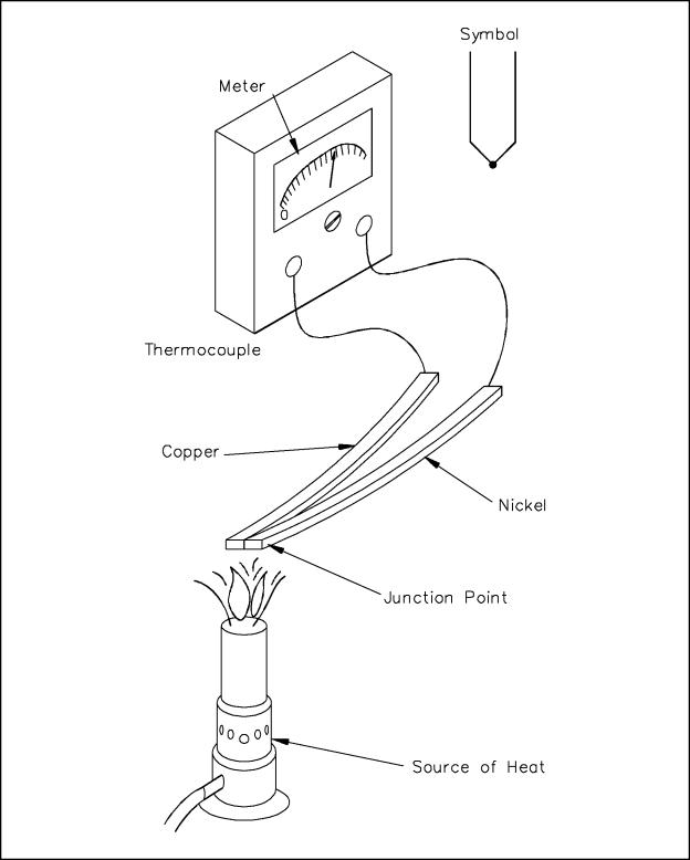 A thermocouple is a device used to convert heat energy into a voltage output. The thermocouple consists of two different types of metal joined at a junction (Figure 3).