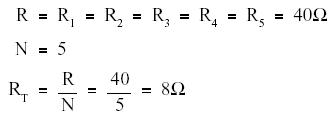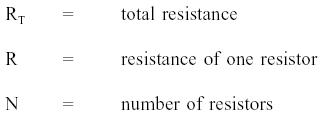 Formulas Total resistance of equal resistors in a parallel circuit is equal to the resistance of one resistor divided by the number of resistors.