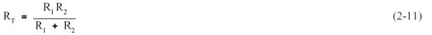 When any two resistors are unequal in a parallel circuit, it is easier to calculate RT by multiplying the two resistances and then dividing the product by the sum, as shown in equation (2-11). As shown in equation (2-11), this is valid when there are only two resistors in parallel.