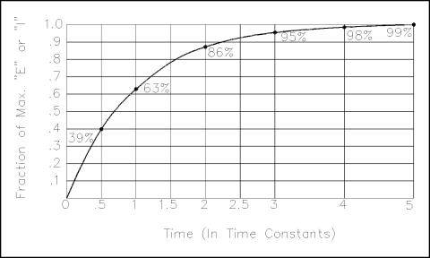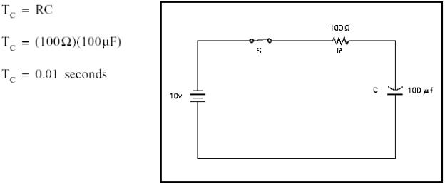 Time Constant When a capacitor is connected to a DC voltage source, it charges very rapidly. If no resistance was present in the charging circuit, the capacitor would become charged almost instantaneously. Resistance in a circuit will cause a delay in the time for charging a capacitor. The exact time required to charge a capacitor depends on the resistance (R) and the capacitance (C) in the charging circuit. Equation (3-13) illustrates this relationship. TC = RC (3-13) where Tc= capacitive time constant (sec) R = resistance (ohms) C = capacitance (farad) The capacitive time constant is the time required for the capacitor to charge to 63.2 percent of its fully charged voltage. In the following time constants, the capacitor will charge an additional 63.2 percent of the remaining voltage. The capacitor is considered fully charged after a period of five time constants (Figure 18).