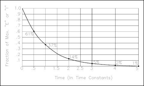 Figure 18 Capacitive Time Constant for Charging Capacitor The capacitive time constant also shows that it requires five time constants for the voltage across a discharging capacitor to drop to its minimum value (Figure 19).