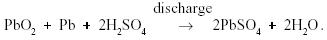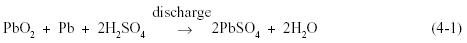 Figure 4 Chemical Action During Discharge When a lead-acid battery is discharged, the electrolyte divides into H2 and SO4. The H2 will combine with some of the oxygen that is formed on the positive plate to produce water (H2O), and thereby reduces the amount of acid in the electrolyte. The sulfate (S04) combines with the lead (Pb) of both plates, forming lead sulphate (PbS04), as shown in Equation (4-1).