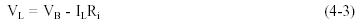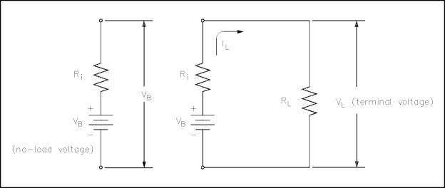 Figure 10 Internal Voltage Drop When current flows in the circuit (IL), the internal voltage drop (ILRi) drops the terminal voltage of the battery as shown in Equation (4-3). Thus, internal resistance reduces both the current and voltage available to the load.