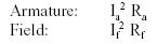 Generator Ratings A DC generator contains four ratings. Voltage: Voltage rating of a machine is based on the insulation type and design of the machine. Current: The current rating is based on the size of the conductor and the amount of heat that can be dissipated in the generator. Power:The power rating is based on the mechanical limitations of the device that is used to turn the generator and on the thermal limits of conductors, bearings, and other components of the generator. Speed: Speed rating, at the upper limit, is determined by the speed at which mechanical damage is done to the machine. The lower speed rating is based on the limit for field current (as speed increases, a higher field current is necessary to produce the same voltage). Internal Losses There are four internal losses that contribute to lower efficiency of a DC generator. Copper losses Eddy-current losses Hysteresis losses Mechanical losses Each of these is described m the paragraphs that follow. Copper Losses Copper loss is the power lost as heat in the windings; it is caused by the flow of current through the coils of the DC armature or DC field. This loss varies directly with the square of the current in the armature or field and the resistance of the armature or field coils.
