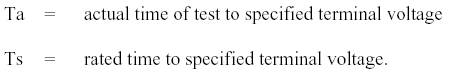 Batteries should be tested at regular intervals to (a) determine whether the battery meets its specification or the manufacturer's rating, or both; (b) periodically determine whether the performance of the battery, as found, is within acceptable limits, and (c) if required, determine whether the battery as found meets the design requirements of the system to which it is connected. The schedule and procedure for battery capacity tests should be performed according to the requirements of ANSUIEEE Std 450, IEEE Recommended Practice for Maintenance, Testing, and Replacement of Large Lead Storage Batteries for Generating Stations and Substations.. For an acceptance or performance test, use the following equation to determine battery capacity:
